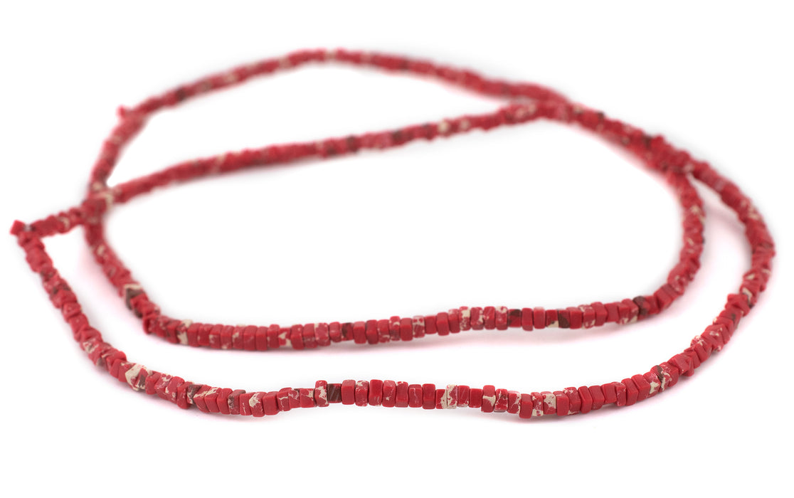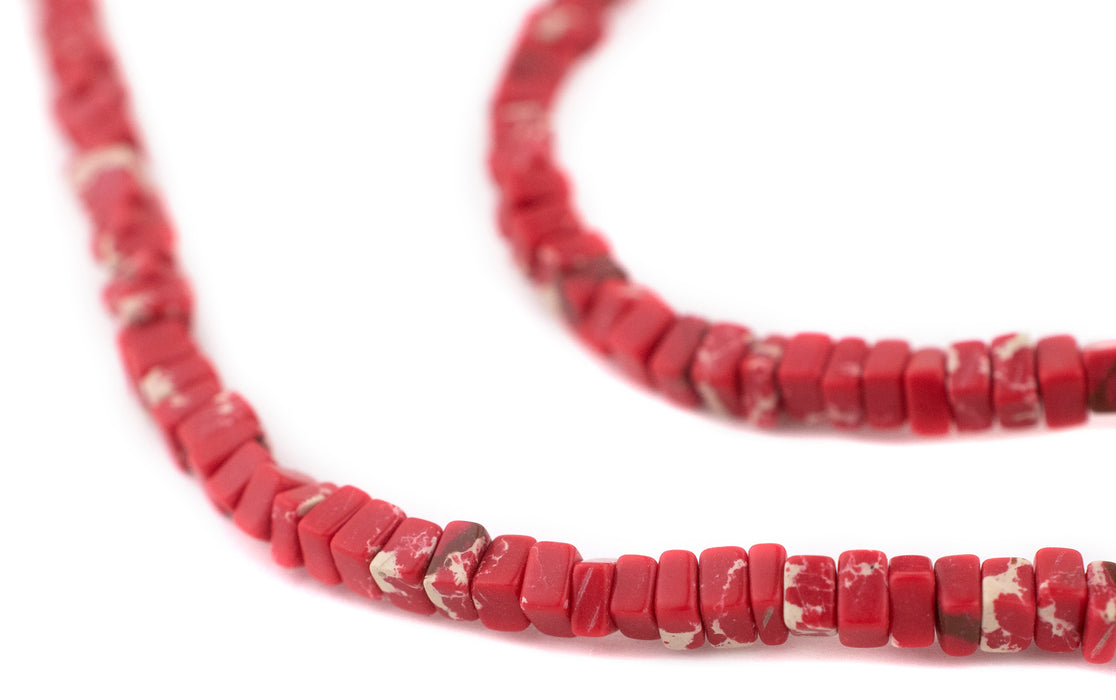 Crimson Red Sea Sediment Jasper Square Heishi Beads (4mm)