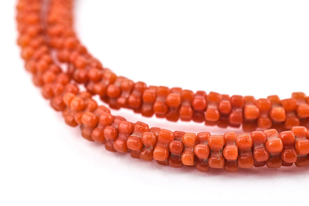 These pressed Czech glass beads are known by a number of names including Star Beads and Snake Beads due to their resemblance to the vertebrae of a snake. Likely dating to the mid 20th century, and considering the number of hands they have passed through, these beads are in pretty good condition. Individual beads measure approximately 2 x 5mm diameter, and tones may vary slightly with a few beads of other colors possibly interspersed. Vintage beads such as these are becoming increasingly difficult to find.