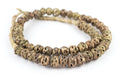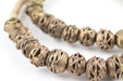 Take a look at these Brass "Globe" trade beads from Africa. Each bead is made individually through the "Lost Wax process" technique. The strand is over 26", with beads measuring approximately 10-12 mm in diameter. Each strand may have 1-2 beads that are less than perfect. Shade of brass and center design may vary slightly between strands.