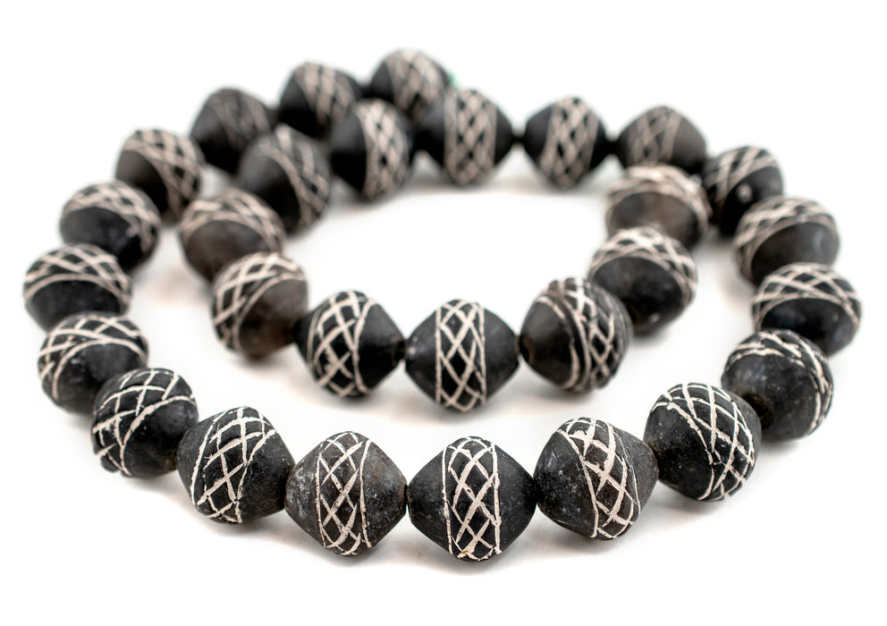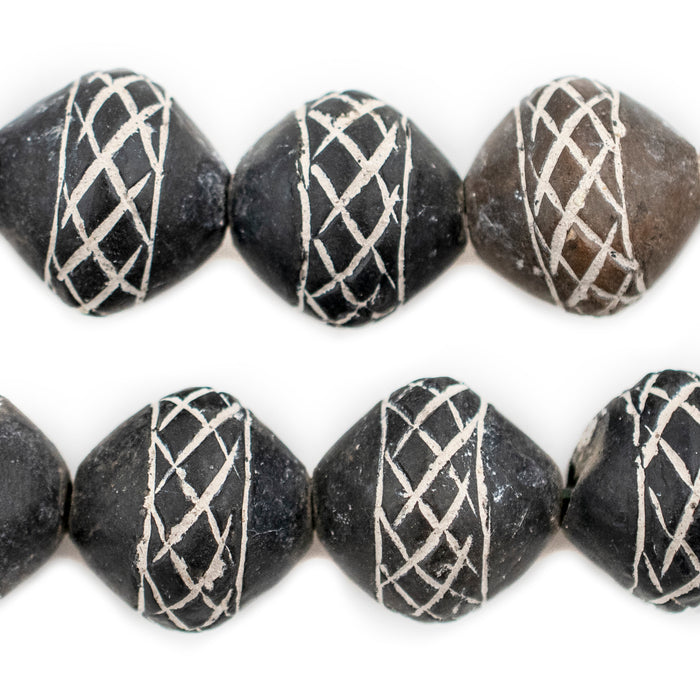 Criss Cross Design Bicone Black Mali Clay Beads (22mm)