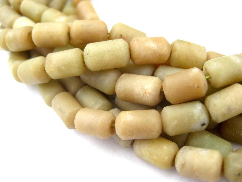Indulge your eyes in these beautiful jade beads brought to you from the mountainous wilds of Afghanistan. The mineral rich landscape of Central Asia has been a source of treasured stones for at least three millennia. These delightful, handcrafted gemstone beads come in a special cylinder shape, measuring approximately 9-11 x 6-7mm, with holes measuring < 1mm. Each strand is approximately 17" long. Jade is a special green stone that has been valued since pre-historic times and has oftentimes been used in carvings and other ornamental objects. Jade is known in many cultures as a symbol of wisdom and peace and is believed to imbue these qualities. Add these beads to your collection today! Multiple strands pictured. Each strand sold individually.