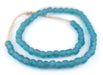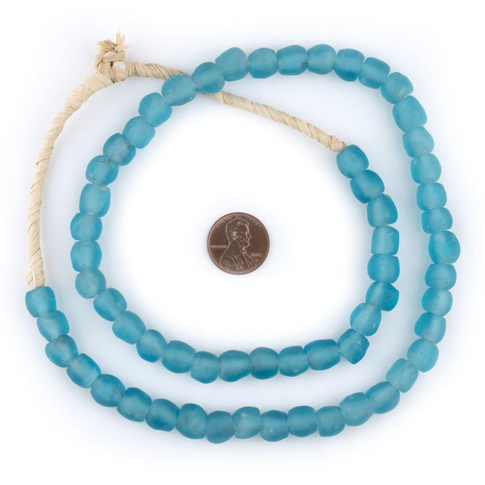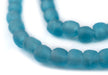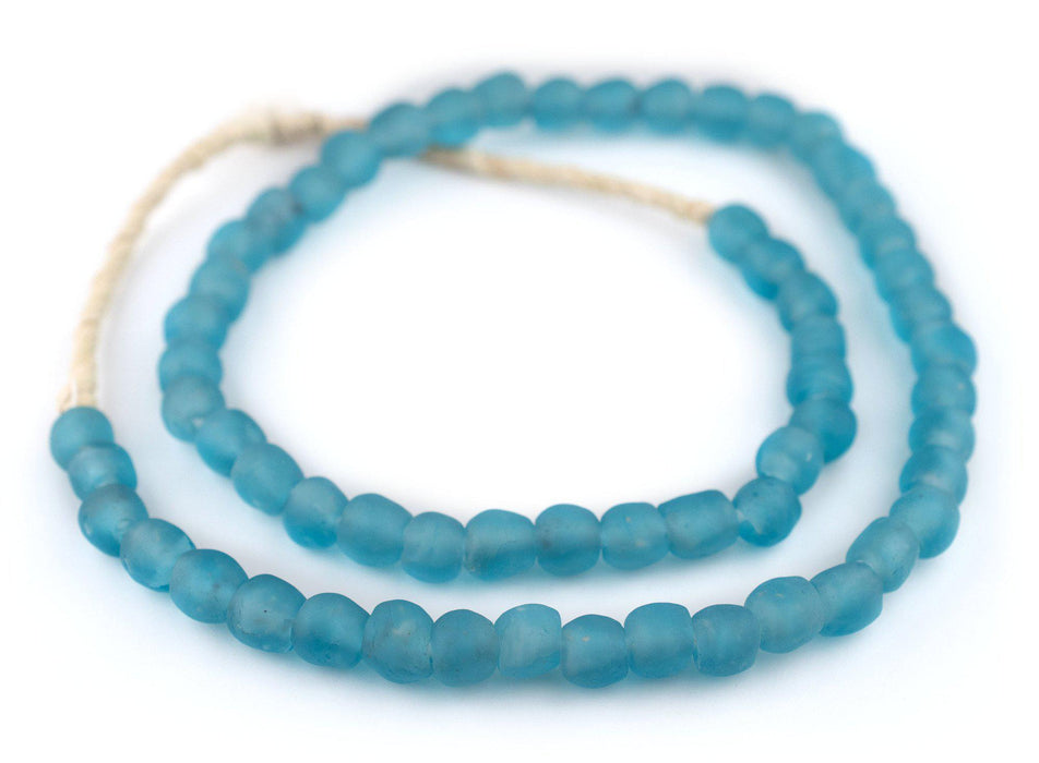 These beautiful recycled glass beads are handmade by artisans in the West African country of Ghana. Each bead is individually handcrafted through a traditional process passed down generation to generation. The steps involve crushing glass into tiny pieces, placing it in a mold, and then heating the crushed glass at high temperatures in a clay oven. Different types of glass are used including old cola bottles, broken tiles and windows, and other types of repurposed glass. The beads on this strand measure approximately 8-10 x 9mm with a hole size of approximately 2mm. Each strand measures about 26". Get your strand today!