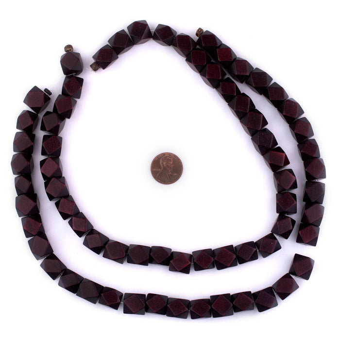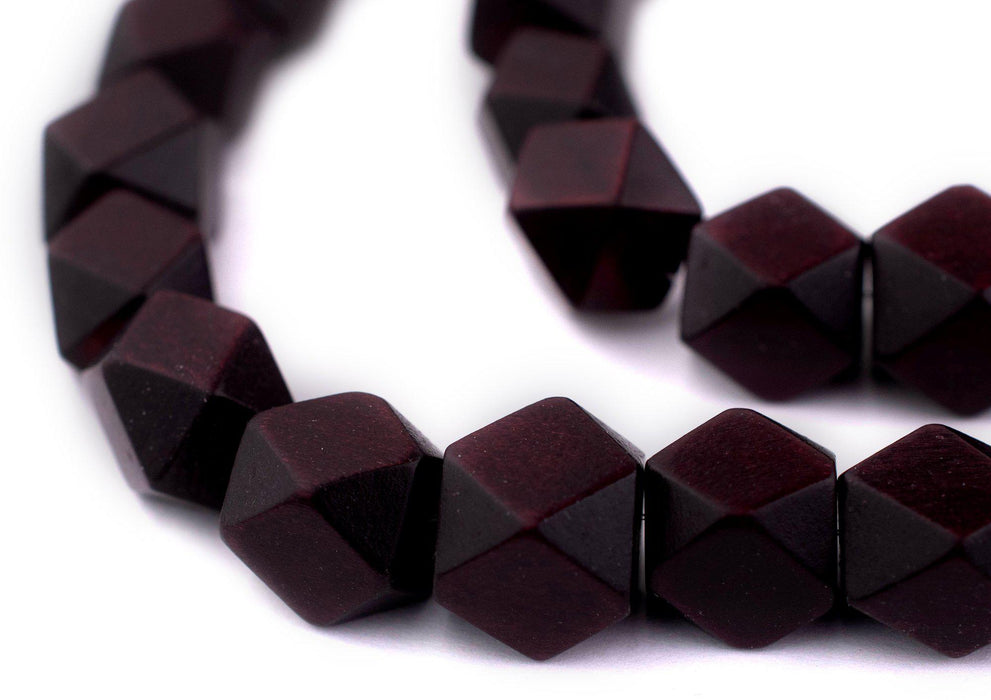 Dark Brown Diamond Cut Natural Wood Beads (12mm)