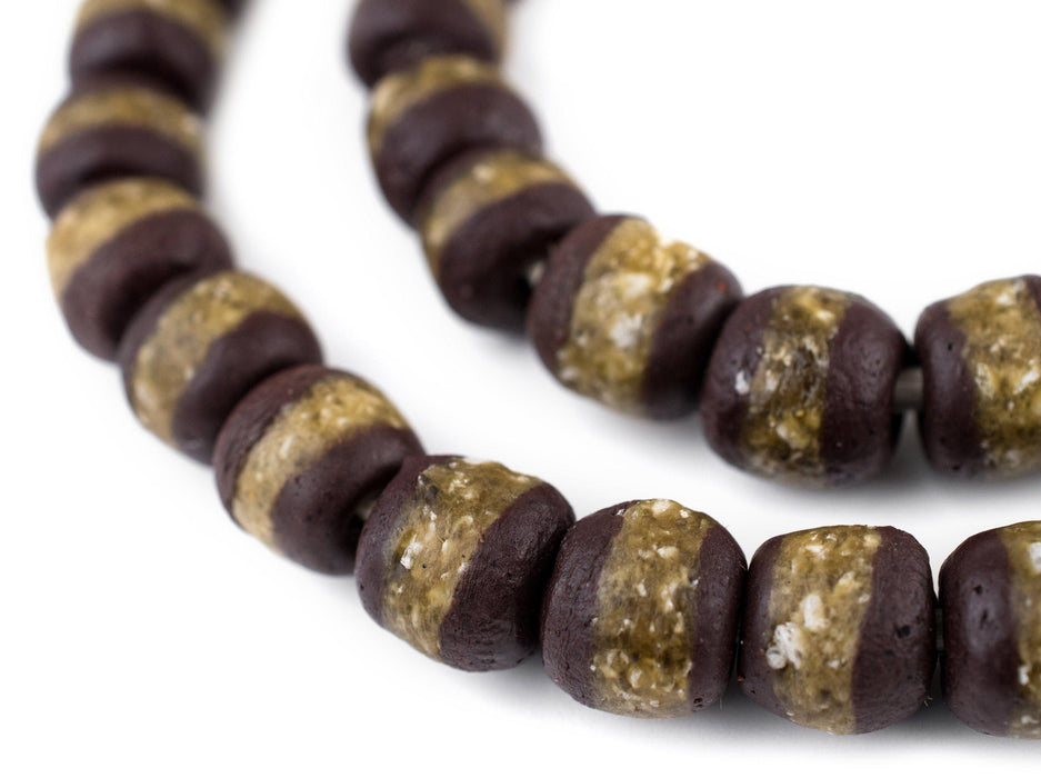 Ghana is known for its history of traditional bead-making. These beautiful powder glass beads are made by Krobo tribe people using centuries-old techniques. Each strand of kente krobo beads includes approximately 55 beads, measuring 11 x 13-14mm, with hole size measuring 3mm. The strand is approximately 28 inches long. Wear this strand of kente krobo as a necklace, or feel free to break the strand and use these beads to create a fun, new creation of your own!