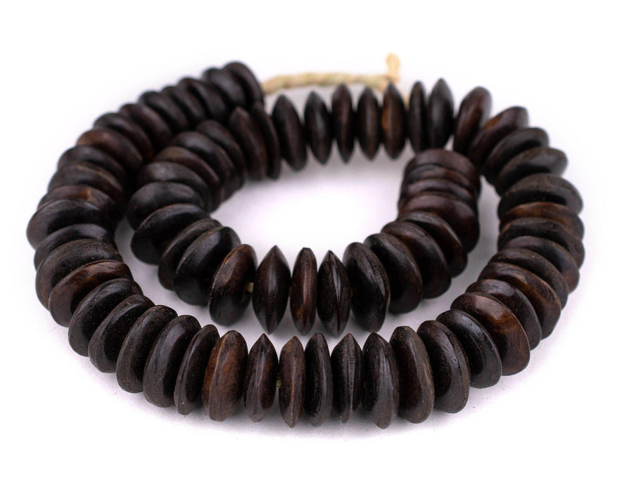 Admire this nicely polished strand of bone beads from Kenya. While Kenyan bone beads are common in a variety of shapes and styles, these beads come in a hard-to-find saucer shape. East African bone beads are handcrafted by artisans using recycled cow bone. Each bead is individually carved and polished, and is truly one of a kind.