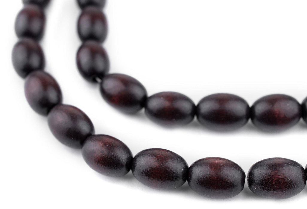 Dark Brown Oval Natural Wood Beads (15x10mm)