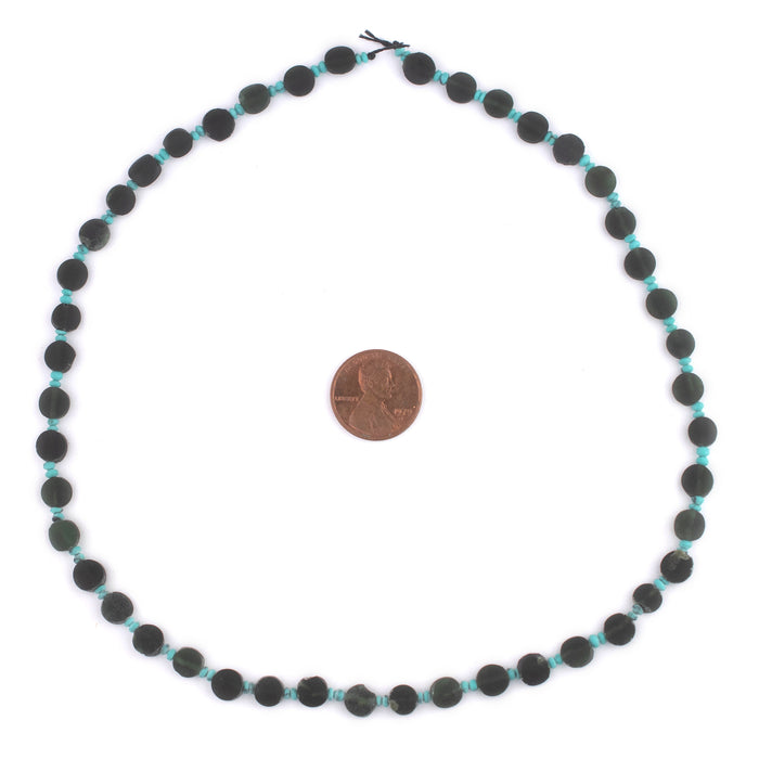 Dark Green Flat Circular Afghan Jade Beads (8mm)
