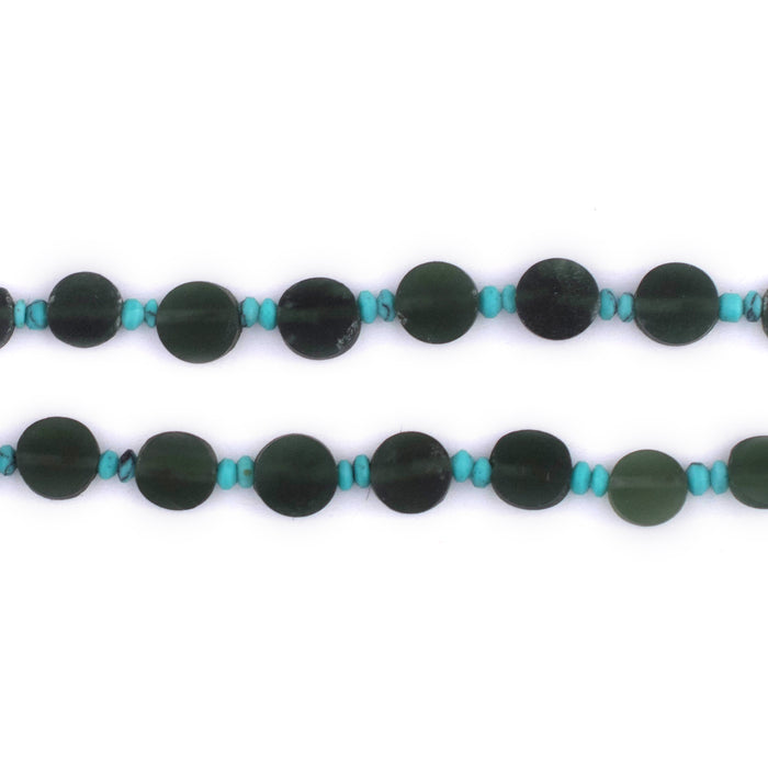 Dark Green Flat Circular Serpentine Beads (6mm)
