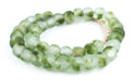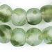 Recycled glass beads are a type of indigenously produced African bead from Ghana West Africa. These beautiful green color recycled beads are made using an old method that has been used for centuries. The glass itself is derived from a variety of recycled sources including old beverage and medicine bottles. The procedure for making the beads consists of a number of steps whereby powdered glass is poured into molds of clay and baked in a specialized oven. These beads are produced in large part by the Krobo tribe and through recycling glass are environmentally friendly.