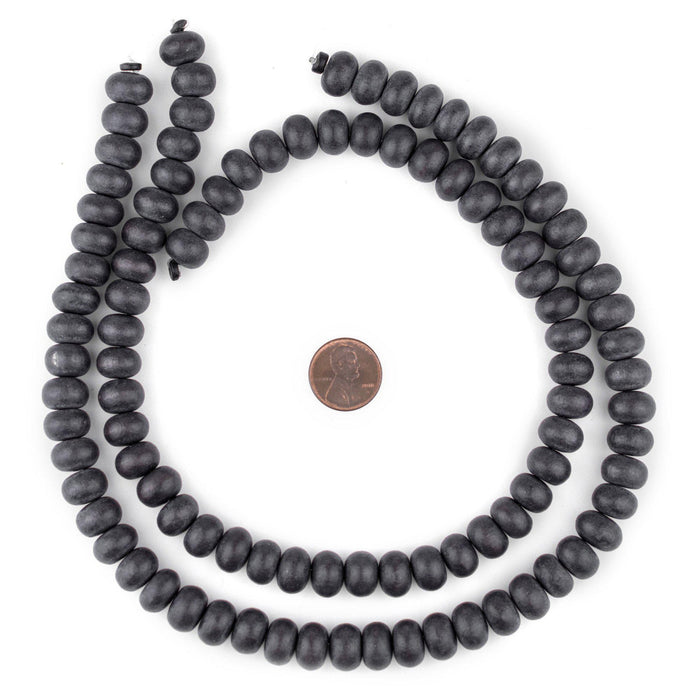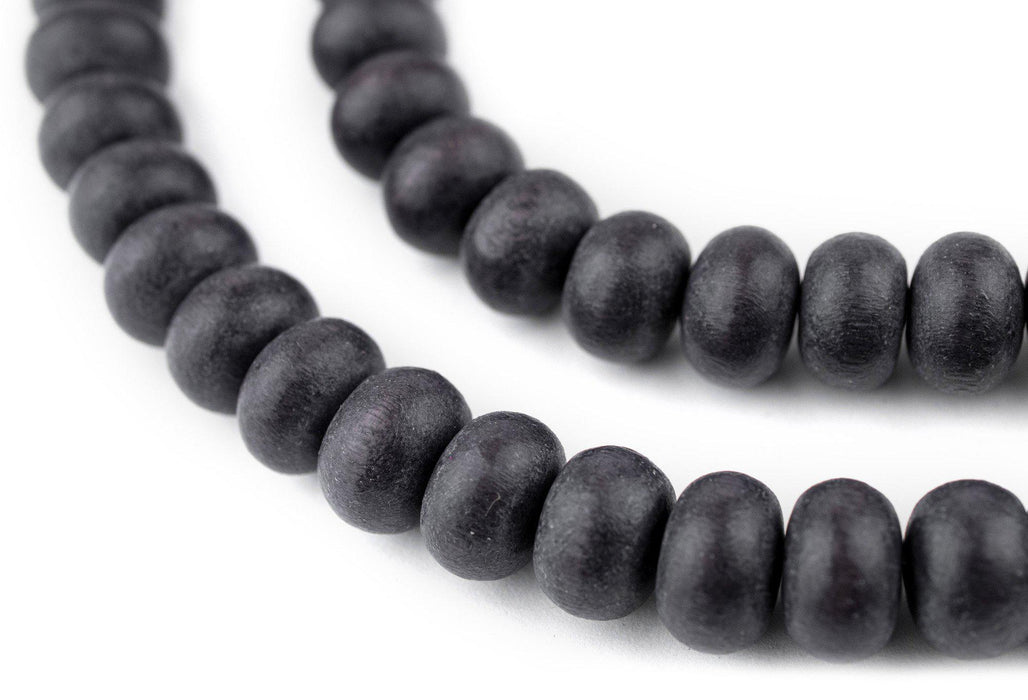 Dark Grey Abacus Natural Wood Beads (8x12mm)