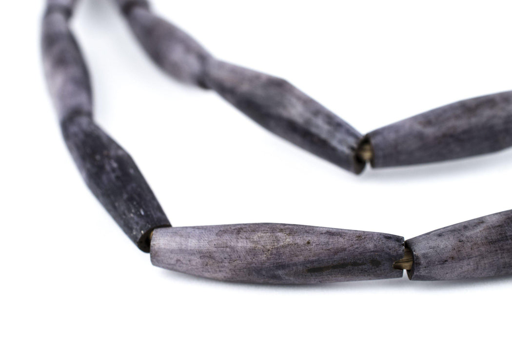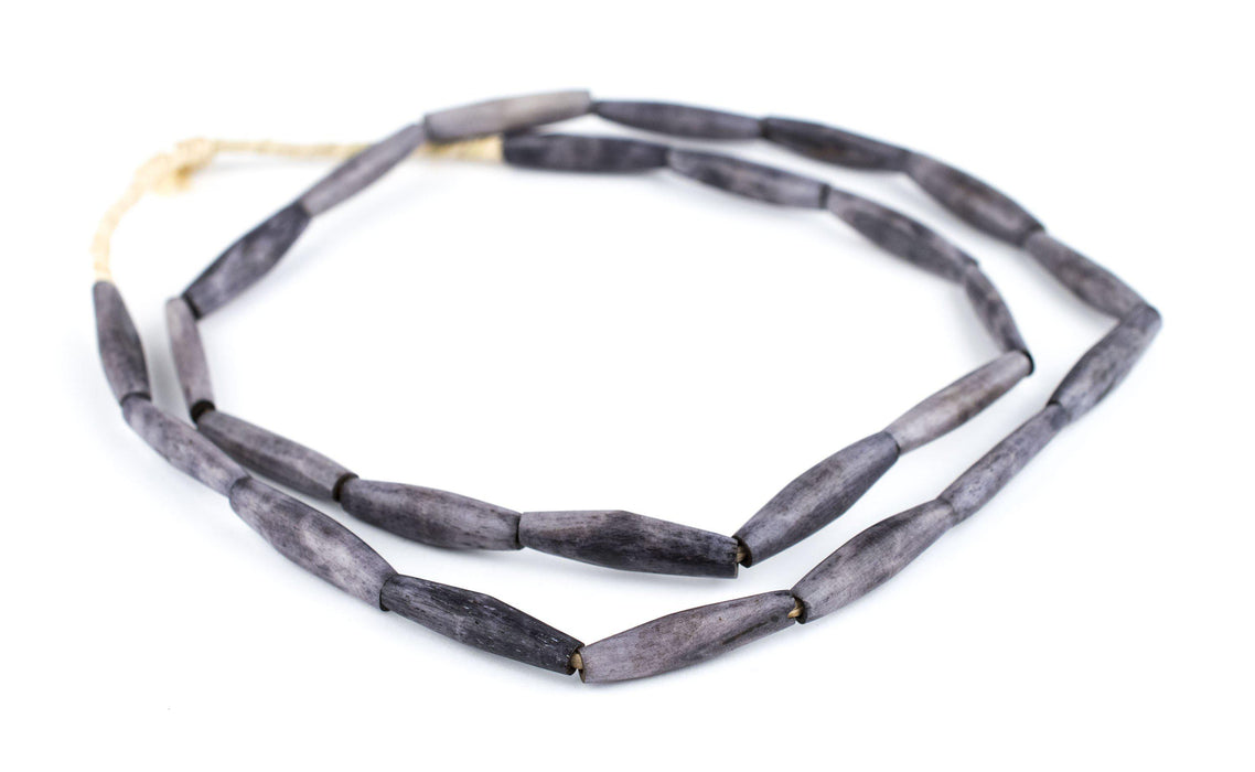 These beads measure approximately 30 x 8mm, with a hole size of 3mm. Strands measure approximately 32", and have approximately 25 beads each. Shade of grey may vary slightly from photo as each batch is hand-dyed.