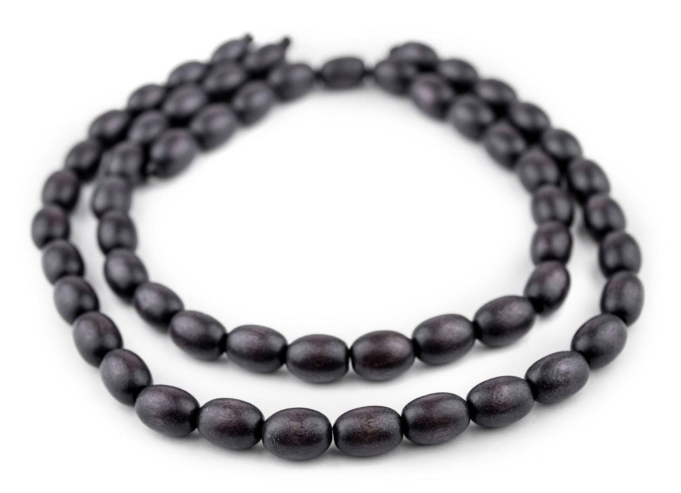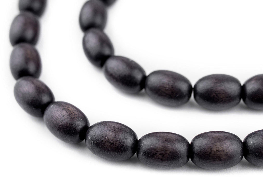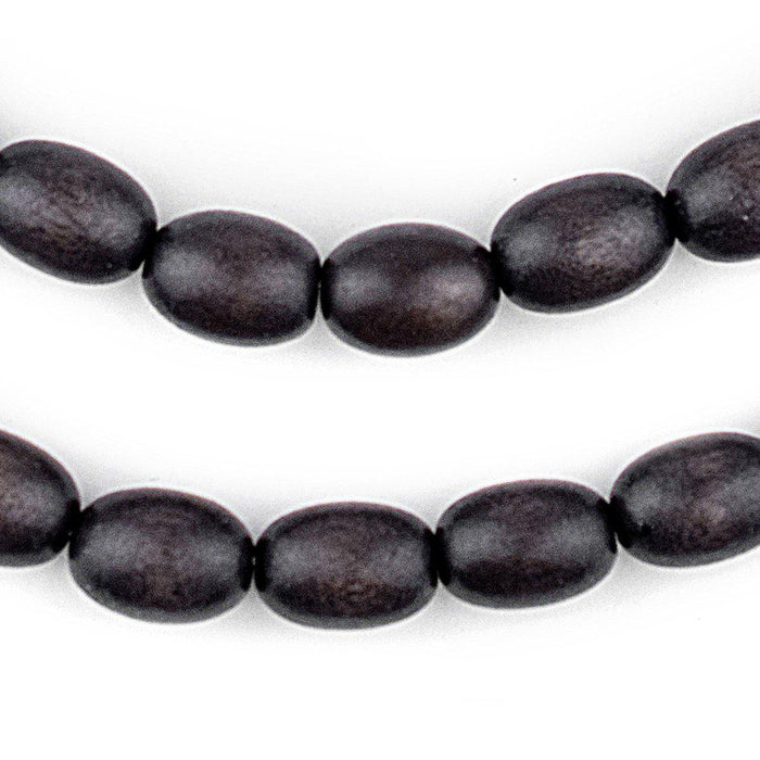 Dark Grey Oval Natural Wood Beads (15x10mm)