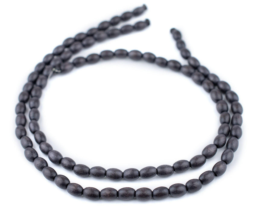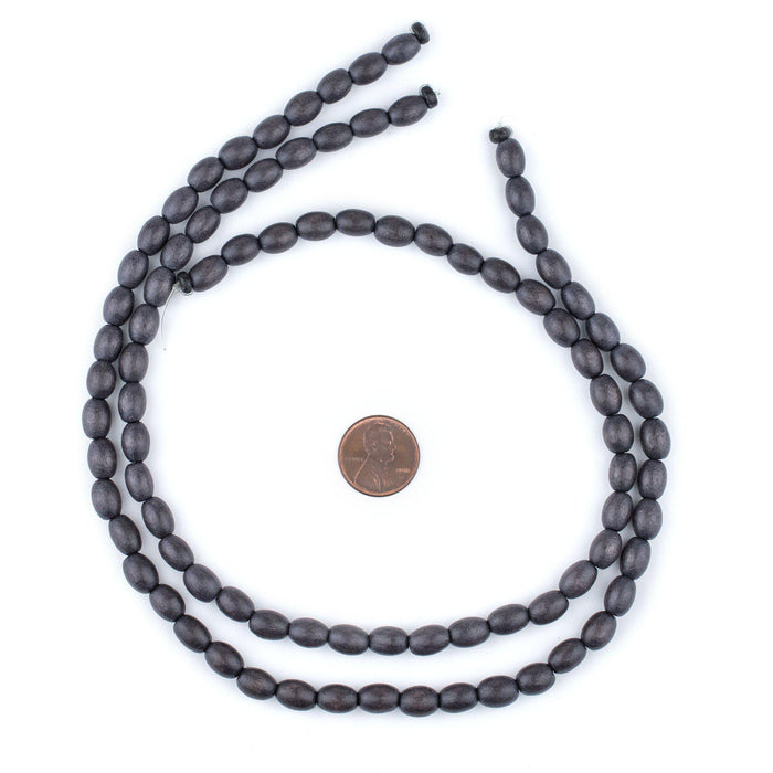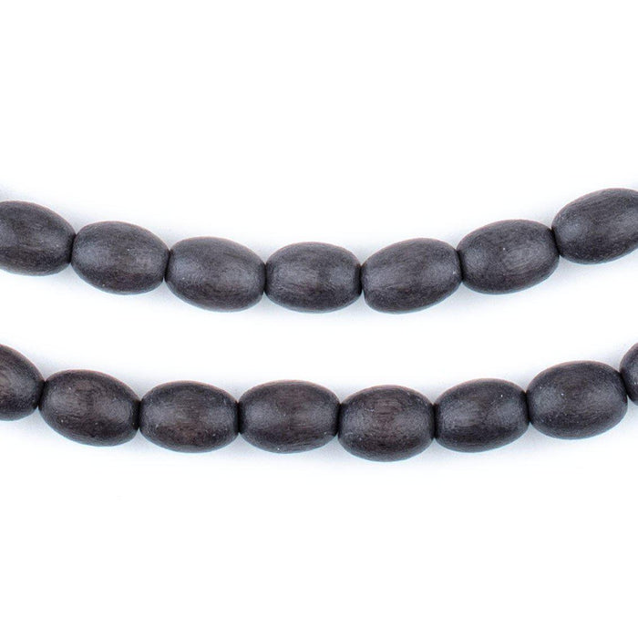 Dark Grey Oval Natural Wood Beads (9x6mm)
