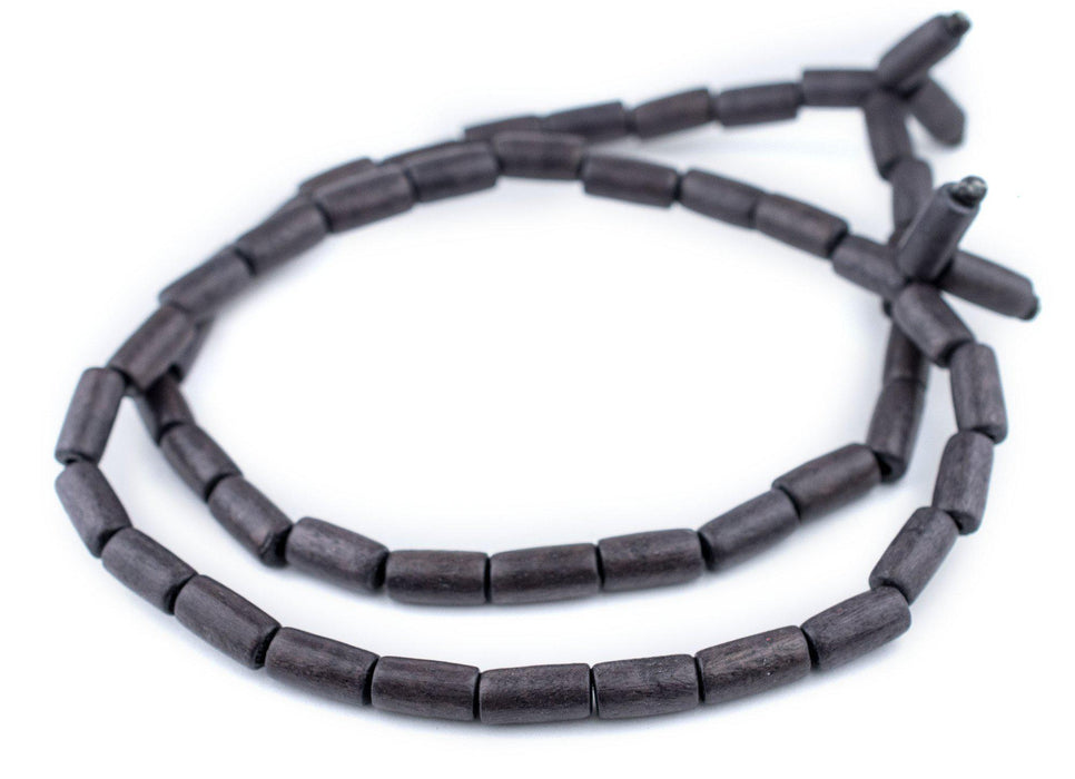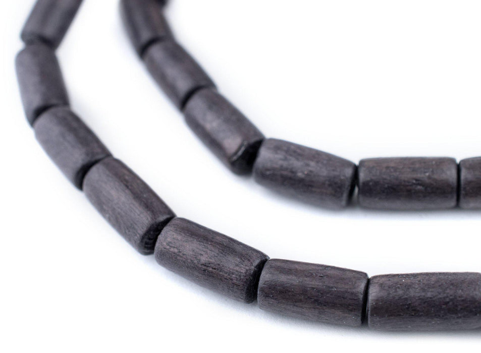 Dark Grey Tube Natural Wood Beads (15x8mm)