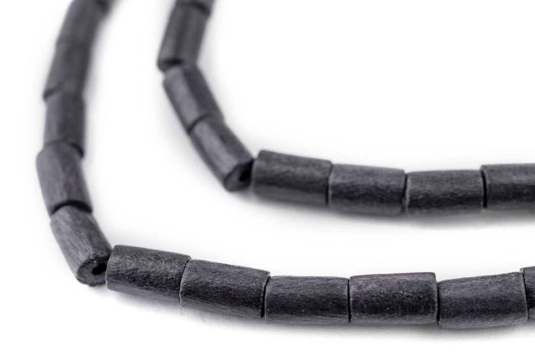 Dark Grey Tube Natural Wood Beads (7x5mm)
