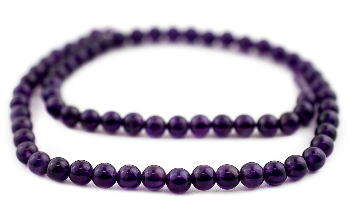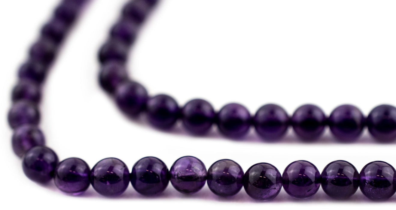These beautiful Deep Purple Gemstone Beads are perfect for almost any jewelry design project. Made from Natural Amethyst these polished gemstone beads have a lovely translucent quality with a smooth and shiny surface. Each strand is about 15" in length. Each bead measures approximately 5-6mm with a stringing hole size of about 0.5mm. Grab a strand to add an alluring pop of deep purple to your design kit today!