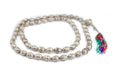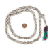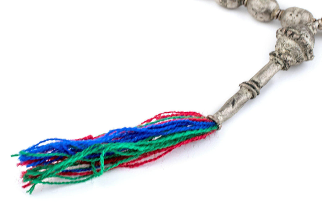 These beautiful vintage-style silver color beads come from Ethiopia. The strand is 38-40" long with beads measuring 13-15mm in length with approximately 9-10mm in diameter. These nicely crafted prayer beads are made from a thicker metal and have a hole size measuring about 1.5-2mm in diameter. The strand comes with one funnel shaped bead at the end enhanced with fun colored tassel.