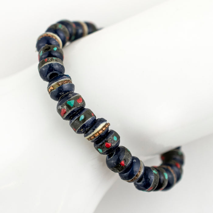 Malas are traditionally used in Buddhist culture as a part of the practice of meditation, however, today malas are enjoyed by people around the world looking to gain mental clarity and live in the present. Our collection of mala bracelets are handmade in Nepal using traditional inlaid beads. These beads are hand carved, inlaid with coral and turquoise style pieces, and strung 27 beads per 7 inch bracelet. Available in over 15 colors, choose your favorites to build your own unique stack! Beads may also be repurposed into your own unique jewelry designs. Grab one for yourself today!