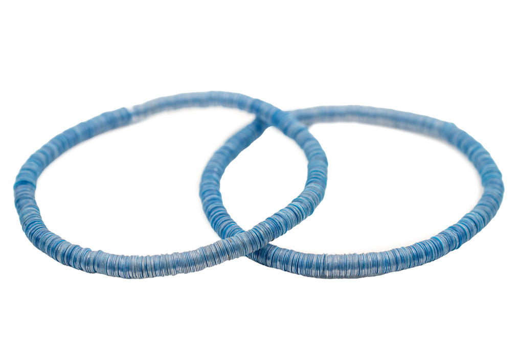 This beautiful piece of jewelry is made using vinyl beads, which are traditional to Ghanaian culture. While vinyl beads are most commonly worn around the waist, these beautiful bracelets pay tribute to West African culture while taking on a more versatile use. Each set of beads is strung on an elastic cord which will stretch over your wrist or ankle. The bracelet has an outer diameter of approximately 7.5 inches. Multiple bracelets may be pictured, however each bracelet is sold individually. Available in twenty different colors. Mix and match your favorite colors to create your own personal stack! The beads can also be repurposed into your own jewelry creations. They measure approximately 4mm in diameter with a hole size of approximately 1mm. Get yours today!