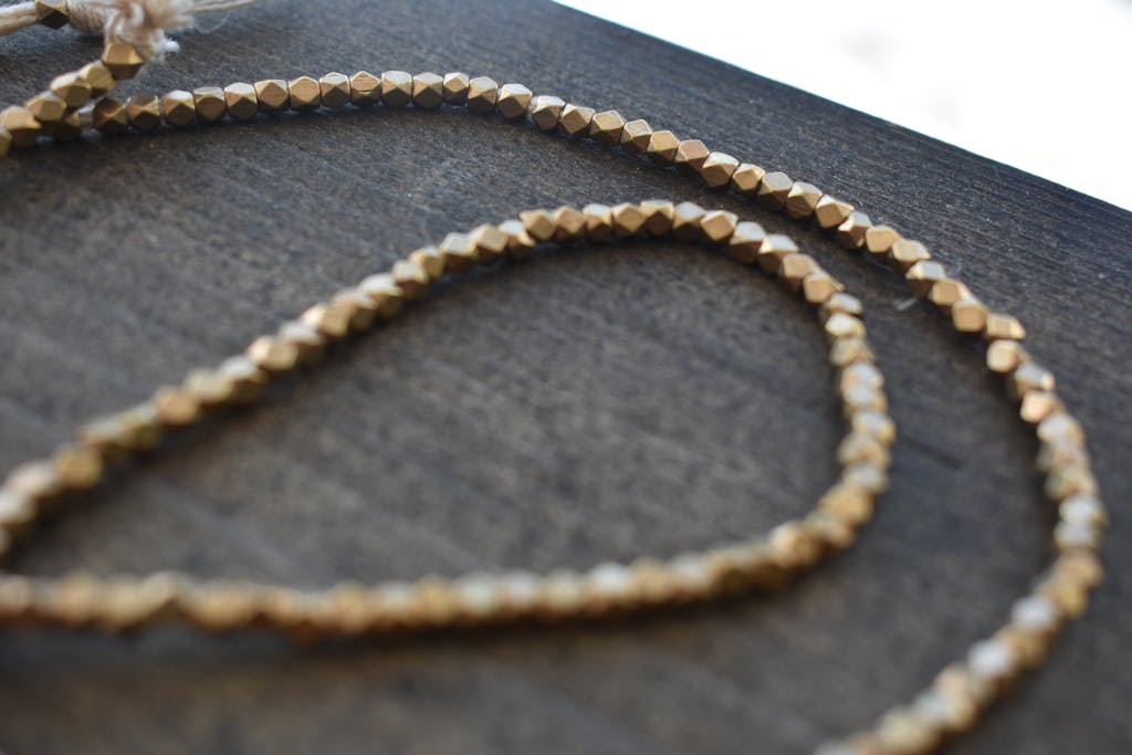 Beautiful strand of faceted gold beads. These beads have been fashioned to resemble a diamond cut. They will add a glamorous touch to your beaded jewelry! Individual beads measure 3mm across.