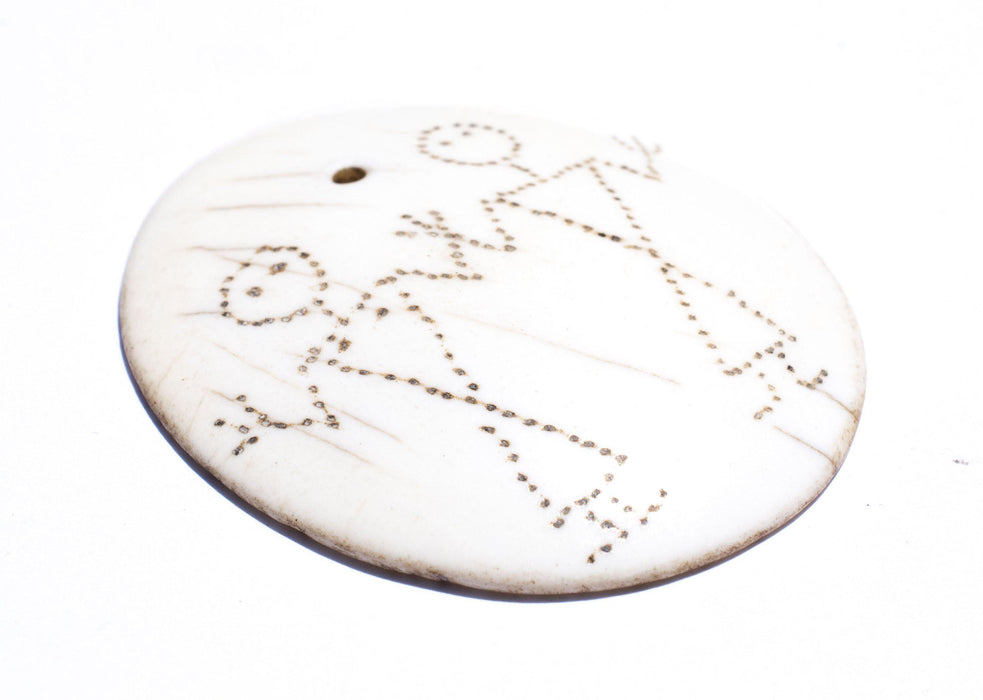 This oval-shaped pendant has been fashioned from authentic conch shell. Ornamental pieces such as this are worn as part of the traditional costume by people of Nagaland in Southeast Asia. Each pendant measures approximately 50-59mm across and has been individually decorated with a dotted design. This would make a great centerpiece for your unique creation or string it through a cord and wear as is. Each pendant is one of a kind and may vary slightly in design from picture.
