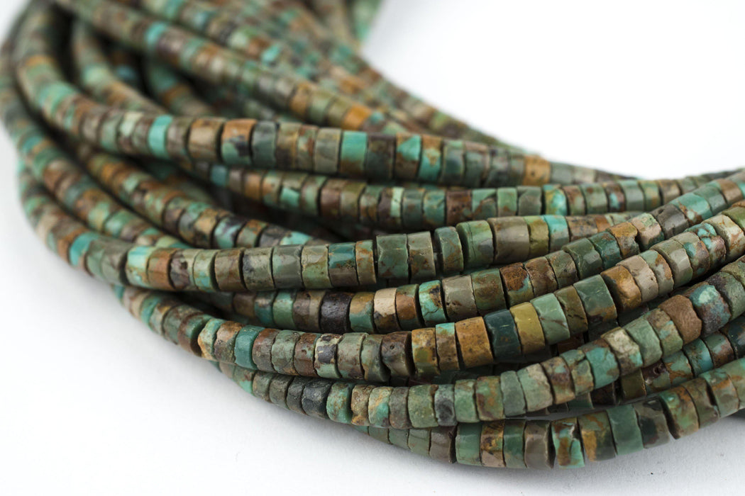 Earthy Green Cylindrical Heishi Turquoise Beads (4mm)