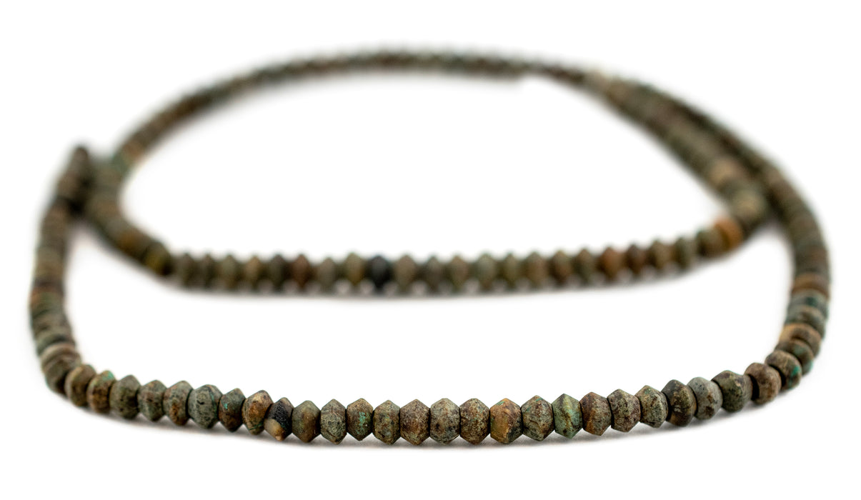 Indulge your eyes in these beautiful turquoise beads brought to you from the mountainous wilds of Afghanistan. The mineral rich landscape of Central Asia has been a source of treasured stones for at least three millennia. These delightful, handcrafted gemstone beads come in a useful saucer shape, measuring approximately 1-3 x 4mm, with a hole size of roughly <1mm. Each strand is about 15" in length. Add these beads to your collection today!