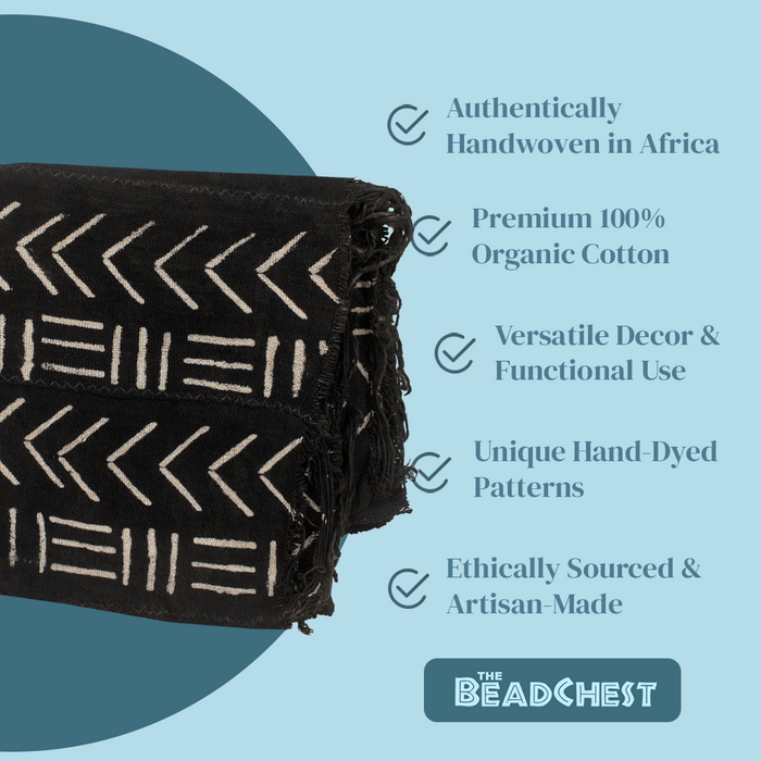 Ebony Black Bogolan Mali Mud Cloth (Kidal Design)