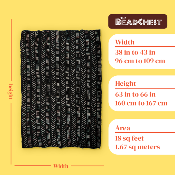 Admire the rich beauty of this authentic Mali mud cloth. Commonly known as Bogolan or Bògòlanfini, each beautiful cloth is hand woven with premium quality cotton, and dyed with fermented mud by the Bambara women of Mali. Look carefully and you will see that each piece has its own unique and distinctive pattern, often times inspired by traditional motifs. Handmade textiles such as this play a central role in the artistic tradition of Malian culture. This versatile fabric can be used for all kinds of unique design projects. Use it as a table cloth, wall hanging, upholstery for custom furniture, or simply as a decorative piece for your favorite room. Each cloth measures approximately 38-43 x 63-66" and may vary slightly from the photo, as each piece is truly one of a kind.