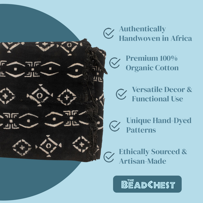 Ebony Black Bogolan Mali Mud Cloth (Koutiala Design)