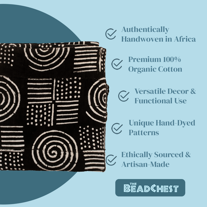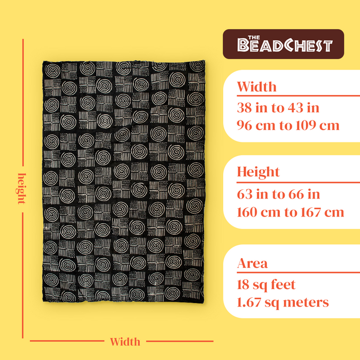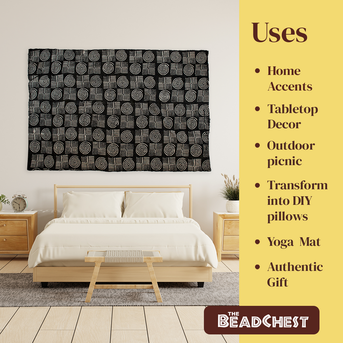 Ebony Black Bogolan Mali Mud Cloth (Spiral Design)