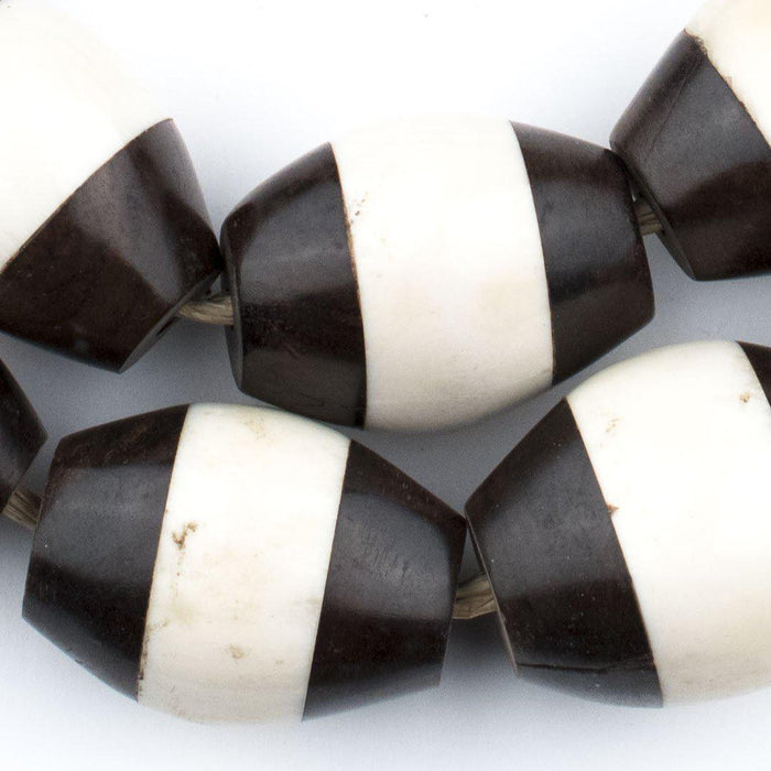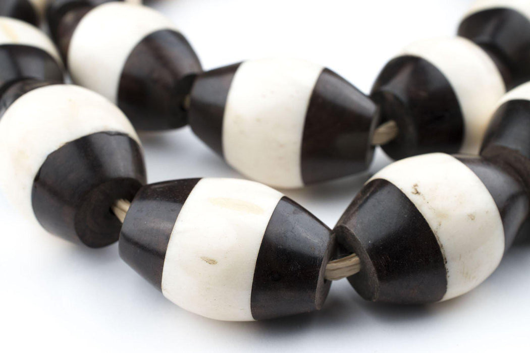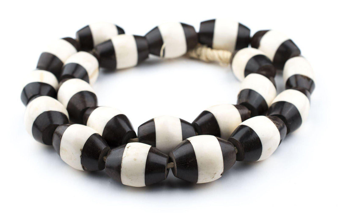 These African beads are made by carving recycled cow bone, drilling a hole through it, and capping it on both ends using authentic African ebony wood. Each bead measures approximately 33-35 x 20-27mm, with a hole size of 3mm. Strands are approximately 32 inches long. Get yours today!