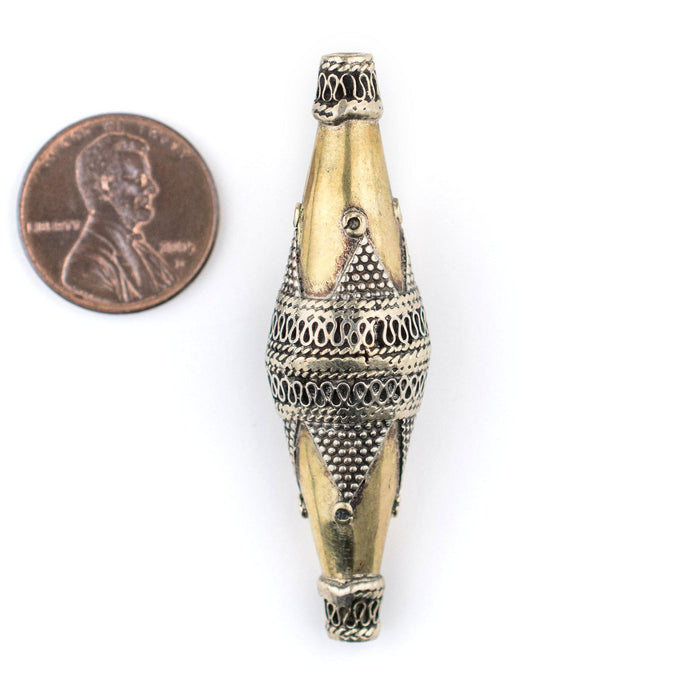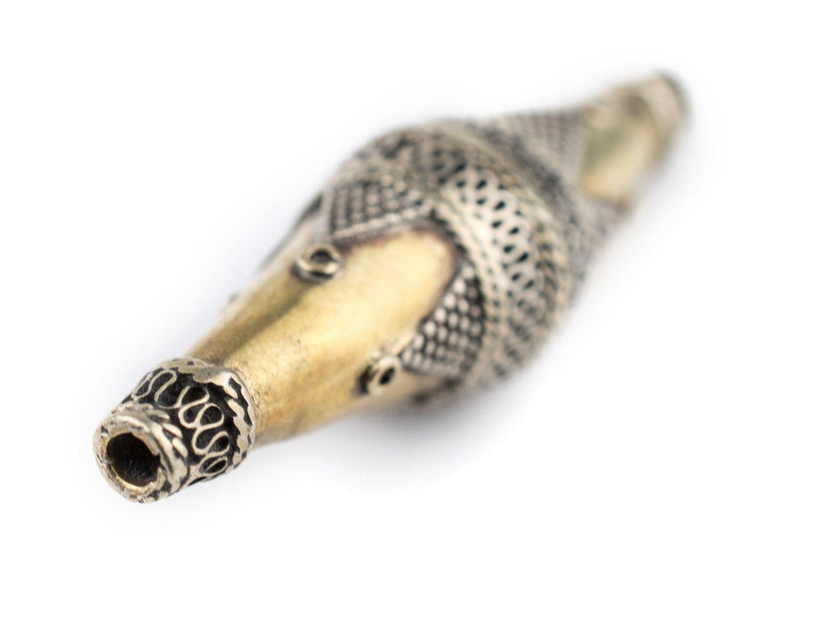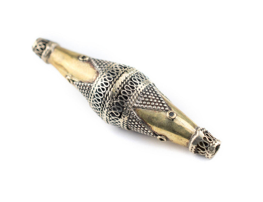 Elongated Afghan Tribal Brass Bead (54x15mm)