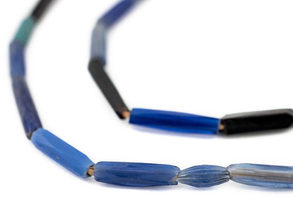 Elongated Russian Blue Glass Tube Beads (5-6mm)