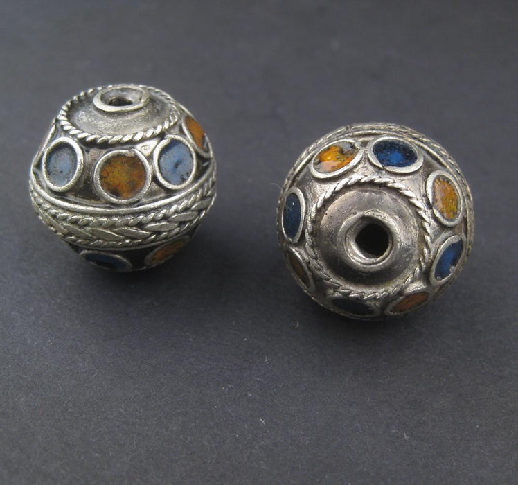 Blue-Orange Enamel Berber Beads (Set of 2)