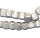 Here is a strand of beautiful old aluminum beads from Ethiopian. The cubes are irregular shape. They are approx 30 yrs old and were made from melting down old, discarded aluminum pots. The strand measures approx 24 inches and there about 80 beads in total, measuring 5-7mm square and rectangular. They are very light in weight and easy to work with. Some strands may not have raffia and may have more beads to make the same length strand.