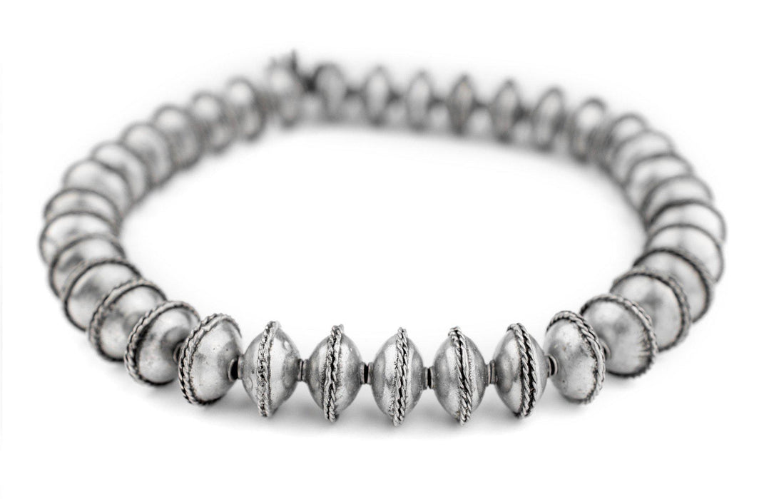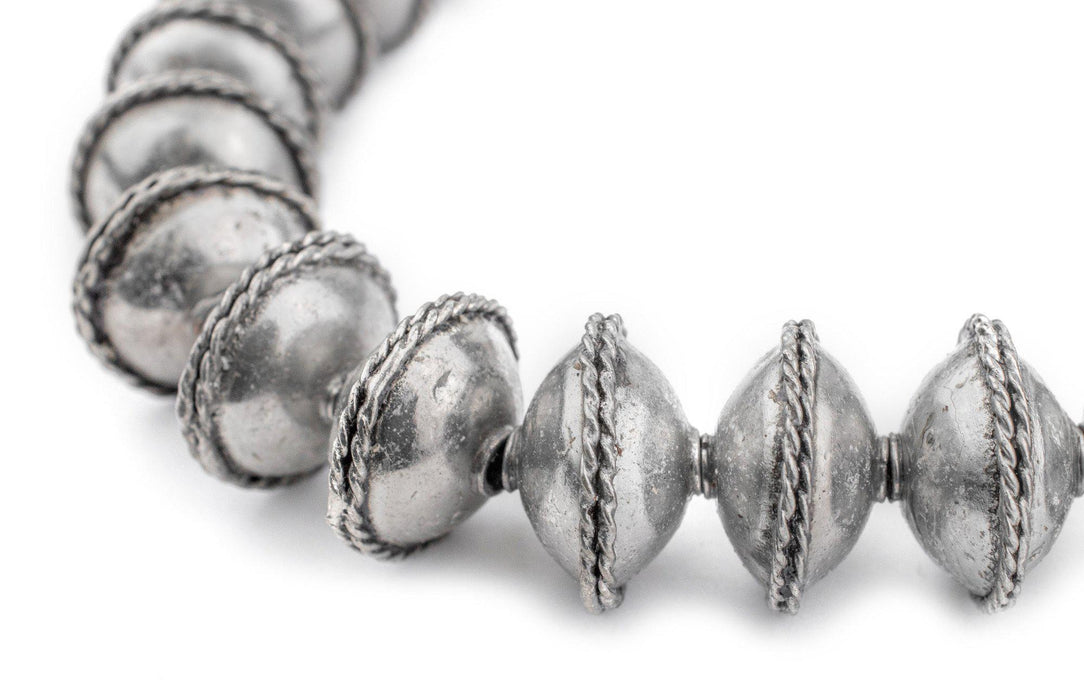 Ethiopian Bezeled Silver Saucer Beads (18mm, 16 Inch Strand)