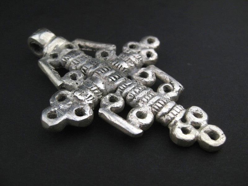 Take a look at this beautiful Ethiopian cross pendant made using a unique casting process. The special geometric motifs are unique to this style of workmanship. These high-quality, solid pendants make a great centerpiece for high-end ethnic jewelry. The pendant measures approximately 52 x 77mm with a hole size of 5mm.