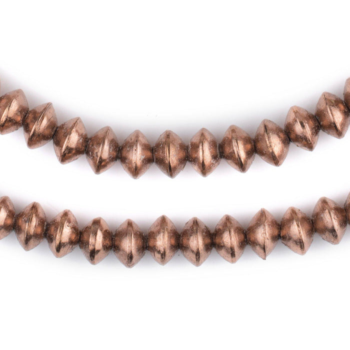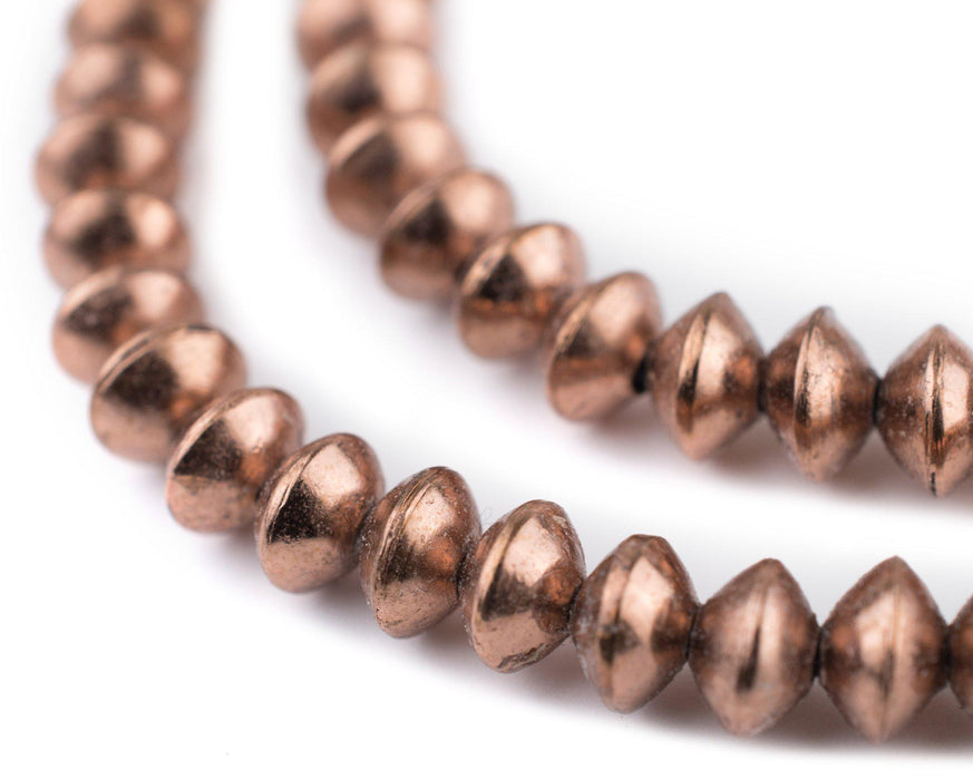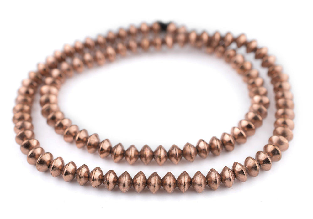 These great saucer-shaped beads are bold and versatile. Each bead measures approximately 6 x 8mm, with a hole size of 2mm. Strands measure 24" inches in length. Look carefully to see the high quality of the workmanship, smooth finish, and rustic character. The hollow design of these beads makes them lighter than they look, without compromising quality. Try some today and see for yourself! This artisan product is made using premium copper electroplating over brass to make these copper finish customer favorites.