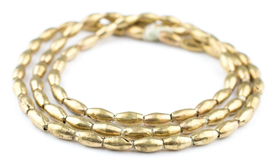 Admire this great strand of brass Ethiopian oval metal beads. These beads have been individually fashioned by hand which lends to them a unique and rustic character. Beads such as these are made by in the workshops of villages artisans from where they are subsequently collected and brought to market. The versatile quality of these beads makes them great for myriad jewelry designs. Use them as spacers, accents, or even wear “as-is”. Each strand measures 31" with individual beads measuring approximately 10-11 x 5-6mm and hole size of 2mm. Order your strand and see the quality of these beads for yourself today!