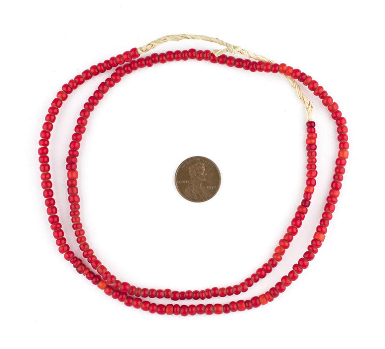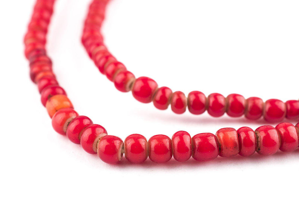 Old Ethiopian Red White Heart Beads (4mm)