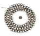 Admire this extra long strand of Ethiopian silver color beads fashioned in a saucer shape. Of the highest quality, each of these special beads is handcrafted to perfection using premium grade metal. While the outside of the bead is thick, the inside is hollow, making these beads relatively lightweight and great for jewelry. Each bead measures approximately 17mm in diameter. There are approximately 90 beads on the strand. Limited supply available.