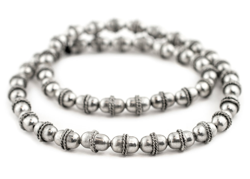 Ethiopian Silver Wired Oval Beads (13x10mm)