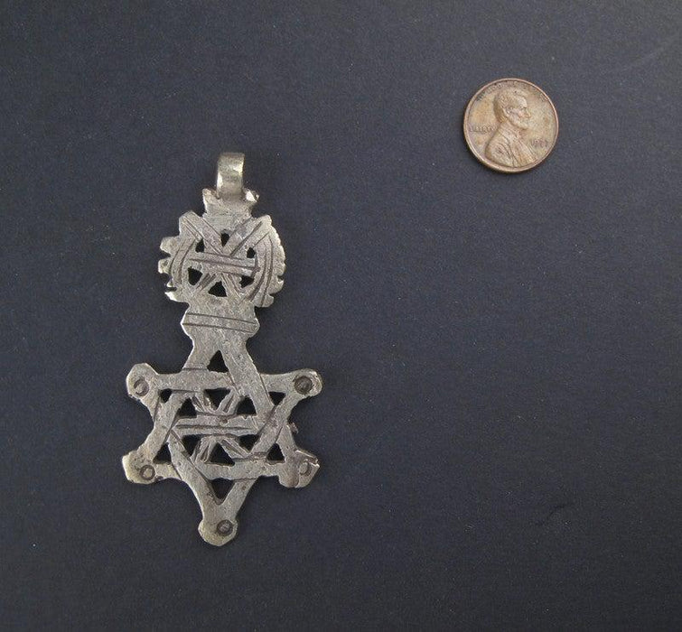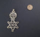 This Ethiopian Coptic Cross is made by the artisan community of Ethiopia, and would make a beautiful necklace...all you have to do is run a chain through it! This unique one of a kind cross is made with a silver alloy. The design on the back of the cross is similar to the design on the front. This beautiful Ethiopian Coptic Cross is APPROXIMATELY 2.5-3" in length.
