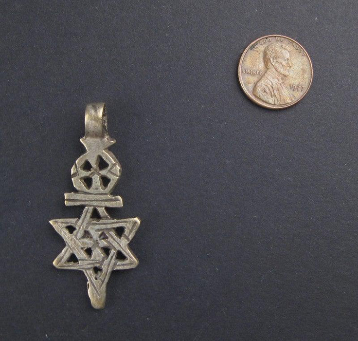 This Ethiopian Star of David is made in the ancient Jewish tradition of Ethiopia, and would make a beautiful necklace...all you have to do is run a chain through it! The cross is made with a silver alloy and measures approximately 1.5-2''. Judaica such as this is difficult to find.