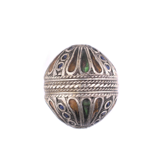 Extra Fancy Silver Enamel Berber Bicone Bead Pendant