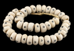 Checkout these beautiful White Bone from Kenya, Africa! The strand is approximately 24" long, and each bead is about 23-25mm in diameter. Due to the handmade nature of these beads some beads may have a wood core that is more secure than others.