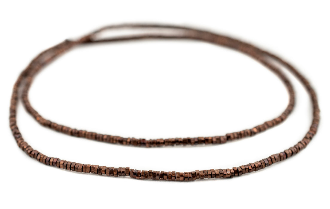 Beautiful strand of high quality, metal beads measuring 24" in length. Individual beads measure 1 x 2.5mm in size, with holes measuring approximately 1mm. Each strand includes approximately 480 beads. These highly versatile beads make great spacers, or may be used to accent your unique beaded designs. This artisan product is made using premium copper electroplating over brass to make these copper finish customer favorites. Grab a strand for yourself today!