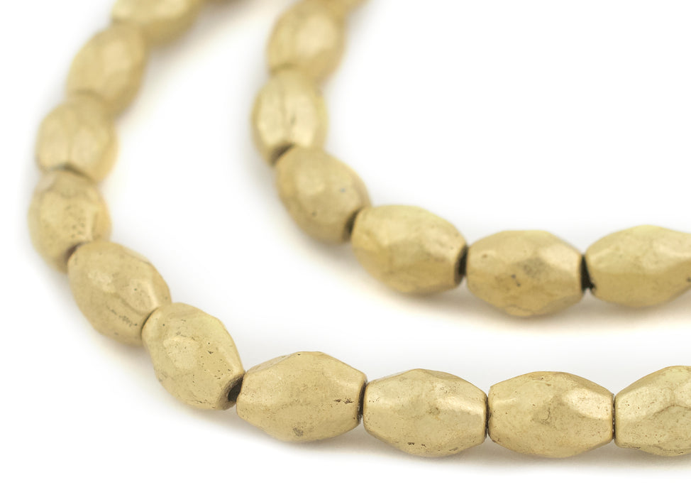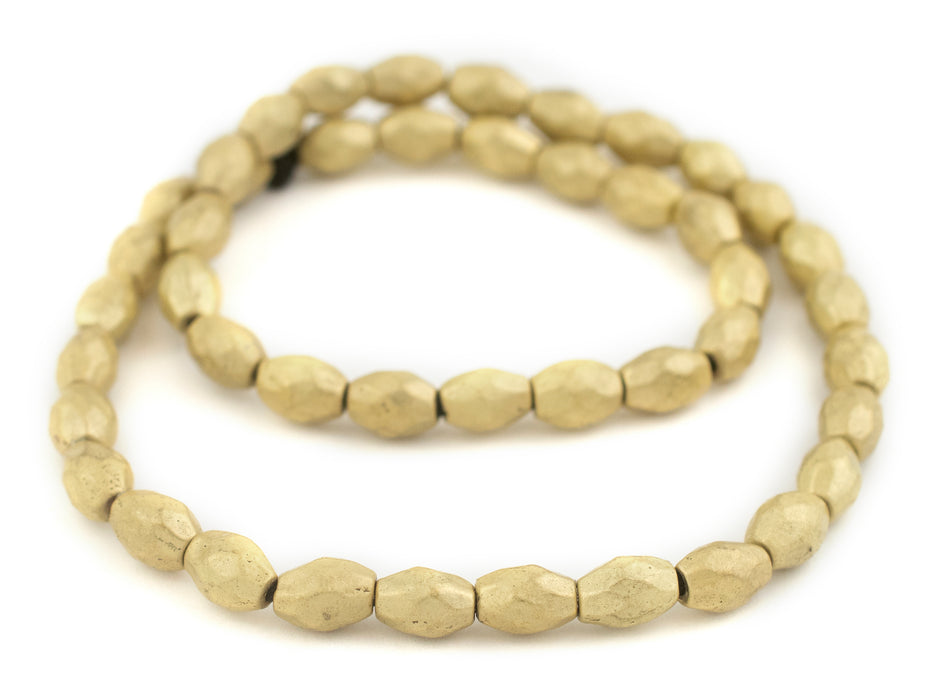 Beautiful strand of uniquely shaped brass beads. These beads have been fashioned in a faceted oval shape. They will add a glamorous touch to your beaded jewelry! Individual beads measure approximately 9 x 6mm with a hole size of approximately 1mm. You will receive a 16" strand. Get yours today!