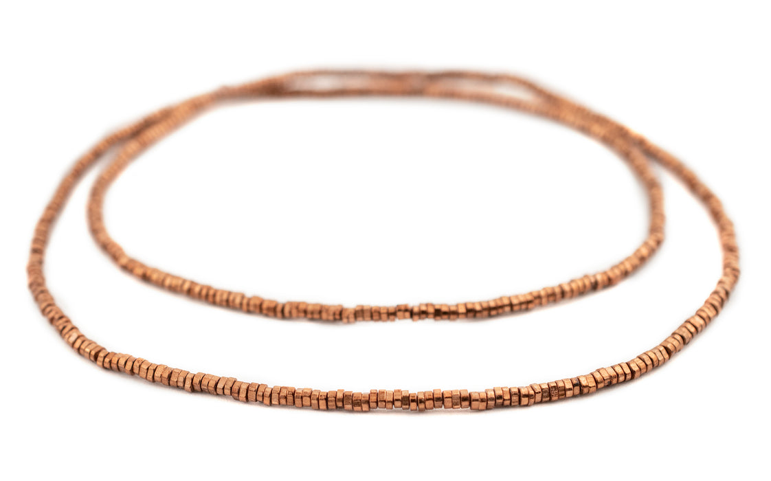 Beautiful strand of high quality, metal beads measuring 24" in length. Individual beads measure 1 x 2.5mm in size, with holes measuring approximately 1mm. Each strand includes approximately 480 beads. These highly versatile beads make great spacers, or may be used to accent your unique beaded designs. This artisan product is made using premium copper electroplating over brass to make these copper finish customer favorites. Grab a strand for yourself today!